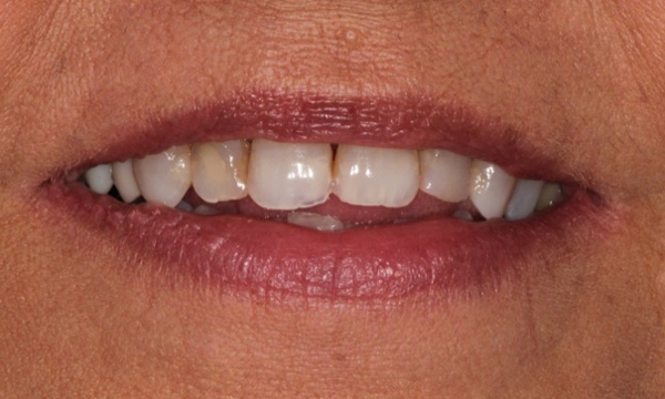 By restoring the front four teeth with porcelain crowns, we were able to reshape, realign, and brighten her smile in a way that looks natural and harmonious with her facial features. Crowns allow us to control tooth shape, length, and color for a seamless, long-lasting result.